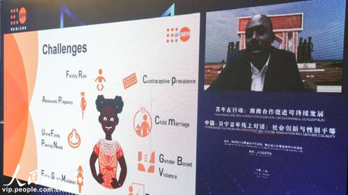 联合国人口基金贝宁代表创新与技术项目官员Wilfried Rouamba 先生,联合国人口基金驻华代表青年项目官员高山先生,参会嘉宾AGBESSI Fifonsi Audry博士、Via Me Association董事会主席分别致辞。他们表示,2015年联合国所有会员国通过了《2030年可持续发展议程》,议程的核心是17个可持续发展目标(SDG),这是全球所有国家在国家间伙伴关系中迫切需要采取的行动,为当今和未来人类与地球的和平与繁荣描绘了共同的蓝图。“南南合作”作为实现国际人口与发展大会(ICPD)以及《 2030年可持续发展议程》的跨领域参与模式,将“南南合作”的干预措施作为联合国人口基金所有专题领域的基础。中国作为世界上最大的发展中国家,是“南南合作”的积极参与者和倡导者。为推动联合国人口基金可持续发展17个目标的实现,中国同世界青年一道,在未来更加广泛全面的交流与合作中,将共同贡献更多更大的力量,书写青年华章。
